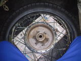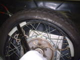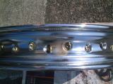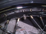 リムの掃除 スポークからの保護用にあるリムバンドを取り外すと 結構錆が浮いている場合がある。 錆は金属ブラシで落とし、クリア等の塗料で防錆しておきます。 |