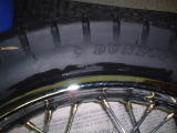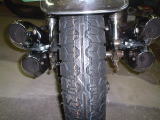 リアタイヤの交換 1年半前に交換したTT100GP センターのみ鬼減り・・・ 走行距離 約8,000kmと思ったより減りが早かった?気がします。 峠道もあまり走らない事もあり、ハイグリップ(昔は)タイヤは 必要ないなぁ〜 と痛感。 そこで安価な DUNLOP K87 MK-2 \6,400をチョイス。 |